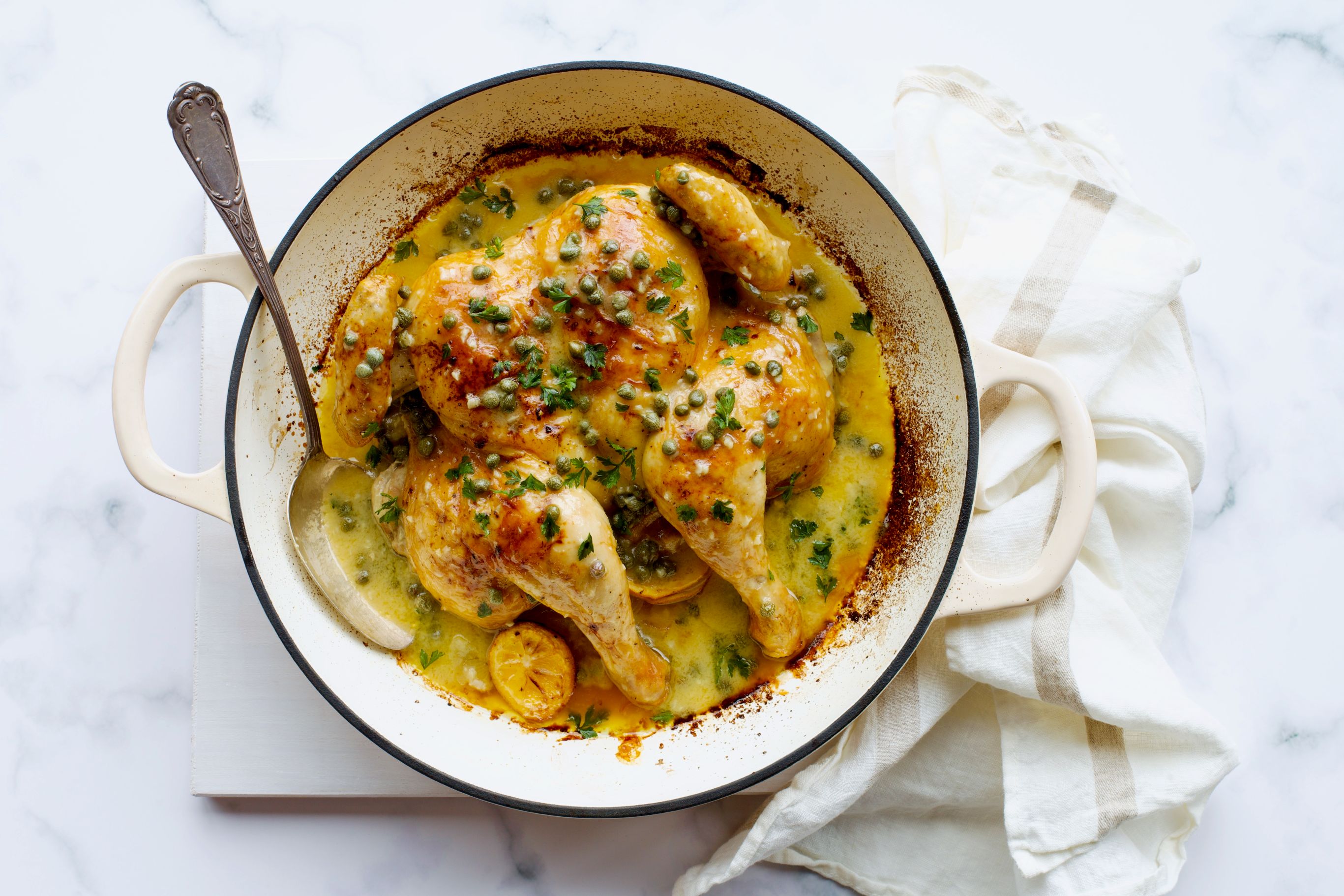 Recipe & Image by Julie Le Clerc Chicken piccata is a wildly popular Italian-American dish usually made with chicken breasts, but I like to change things up and use a whole butterflied bird. The