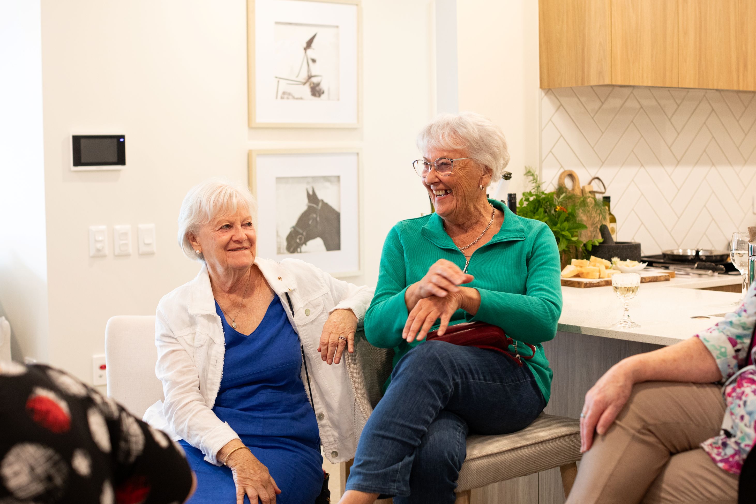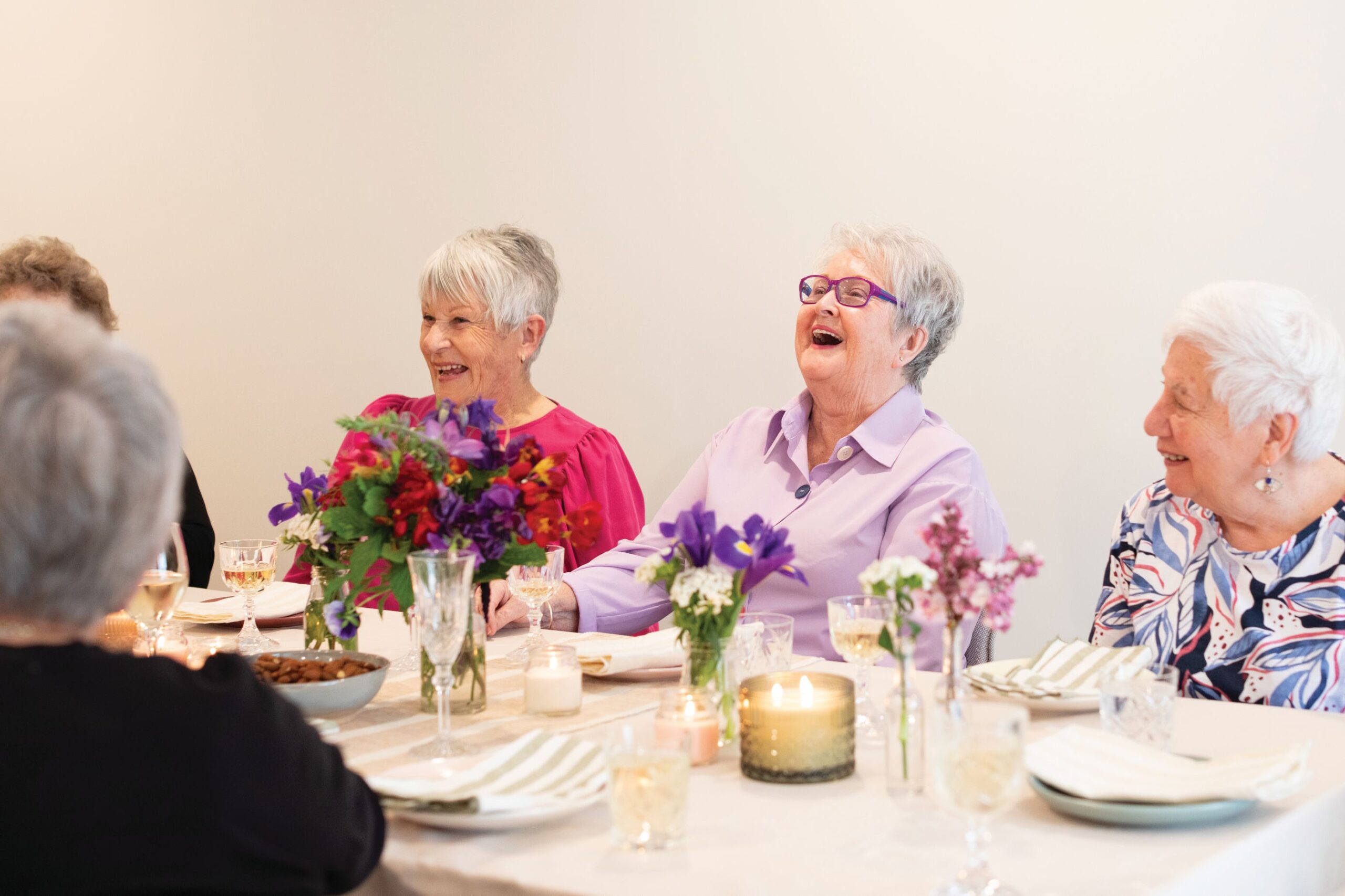Snippets of overlapping chatter reveal glimpses of individual lives. Gwen’s apartment is a regular stop for friends and family for a home-cooked meal, and she also finds the time to churn out delectable treats for charity. Lynette has been here just five weeks at Awatere, and although she has a busy life outside the village volunteering, she’s starting to dip her toes in and mingle. Lois has to say her goodbyes to rush off to perform an urgent job as a Justice of the Peace. And several ladies are discussing Awatere’s wine club and a recent visit from an expert at Takapoto Estate vineyard.