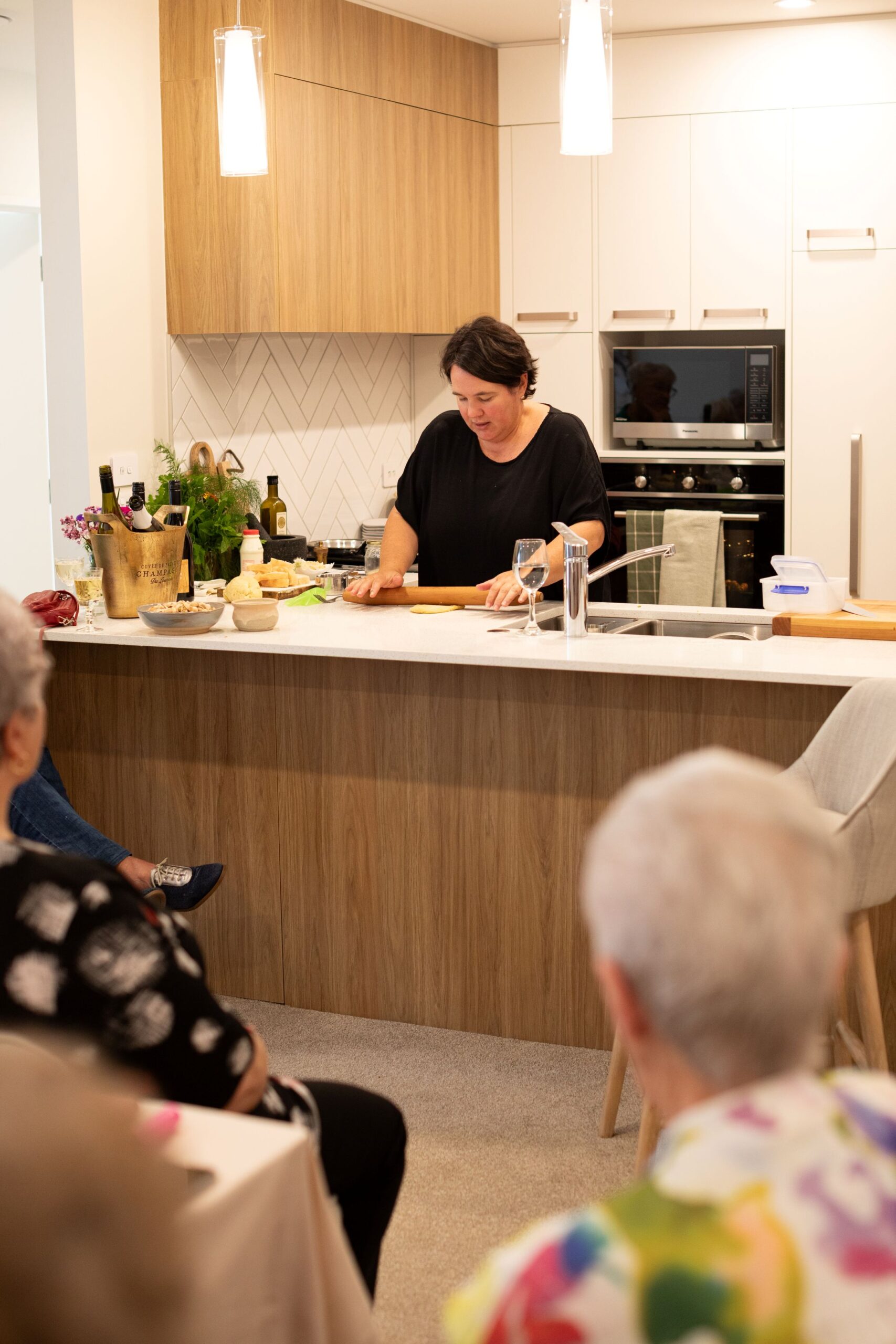 There is a pause in the flow of tips and tricks as there is a flurried search for the oven tray. “I’ve hidden things away and now I don’t know where I’ve put them! Too many cupboards,” Vicki narrates, as she hunts for the elusive tray. “So, it’s not just an old age thing – hurrah!” comes a remark from the audience, earning another round of chuckles from the table.