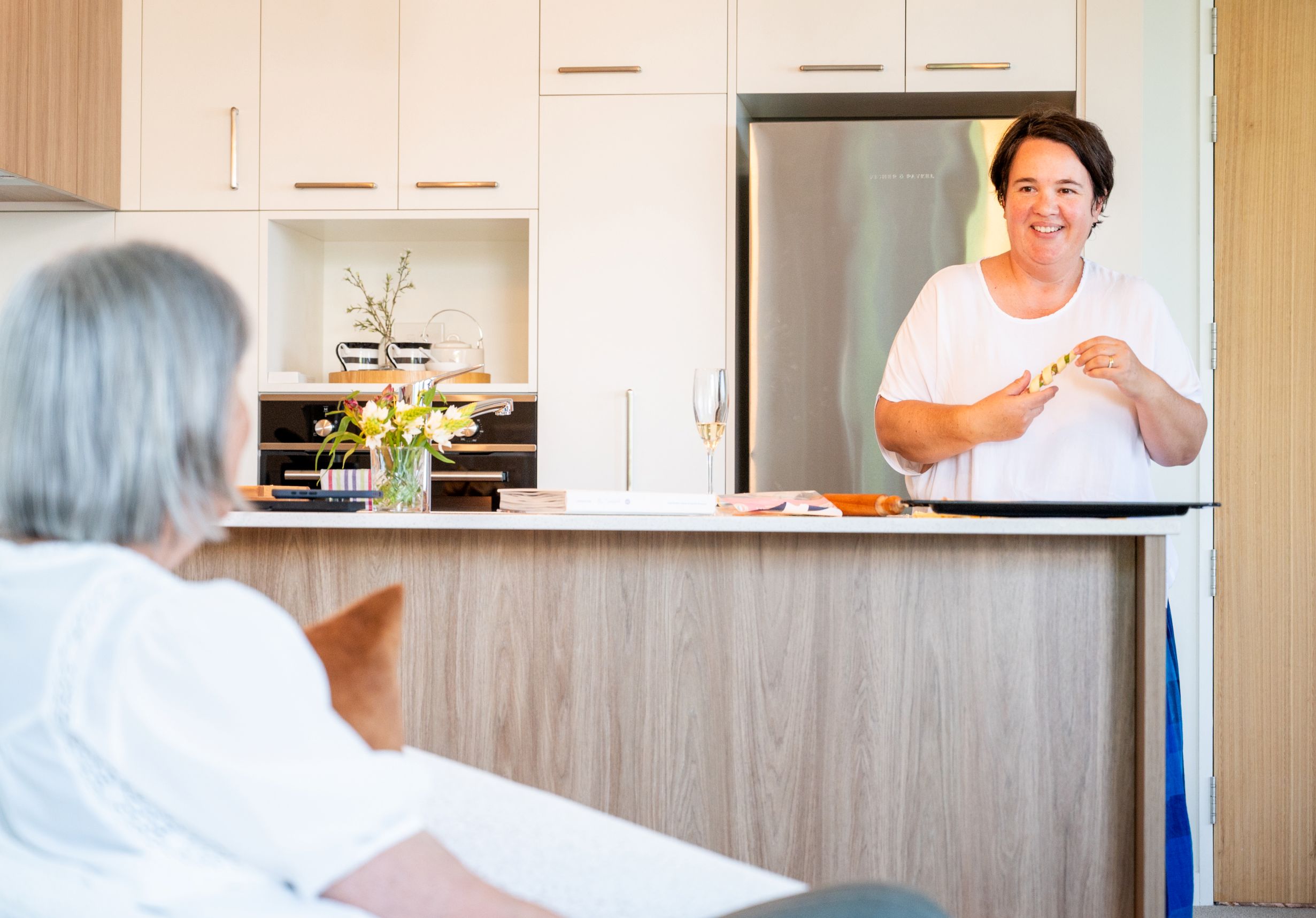 Sunlight spills across the benchtops, catching the rim of a platter piled high with olives and cheese. The atmosphere is easy, unhurried and quietly effervescent. Neighbours who’ve only nodded to one another in the lift are now swapping stories and leaning in close as though the conversation’s been going on for years. “It’s so nice to finally put names to faces,” one woman says with a grin. Another nods, flute in hand. “You could host an entire family in here – and still have space to dance!”