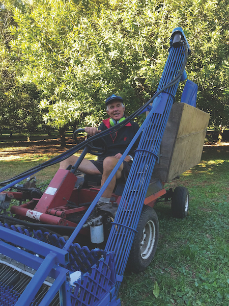 While most of our nuts are harvested mechanically, both grandchildren have learned to walk while pushing the little hand harvesters and are enthusiastic about returning to the orchard to be involved in the harvest.