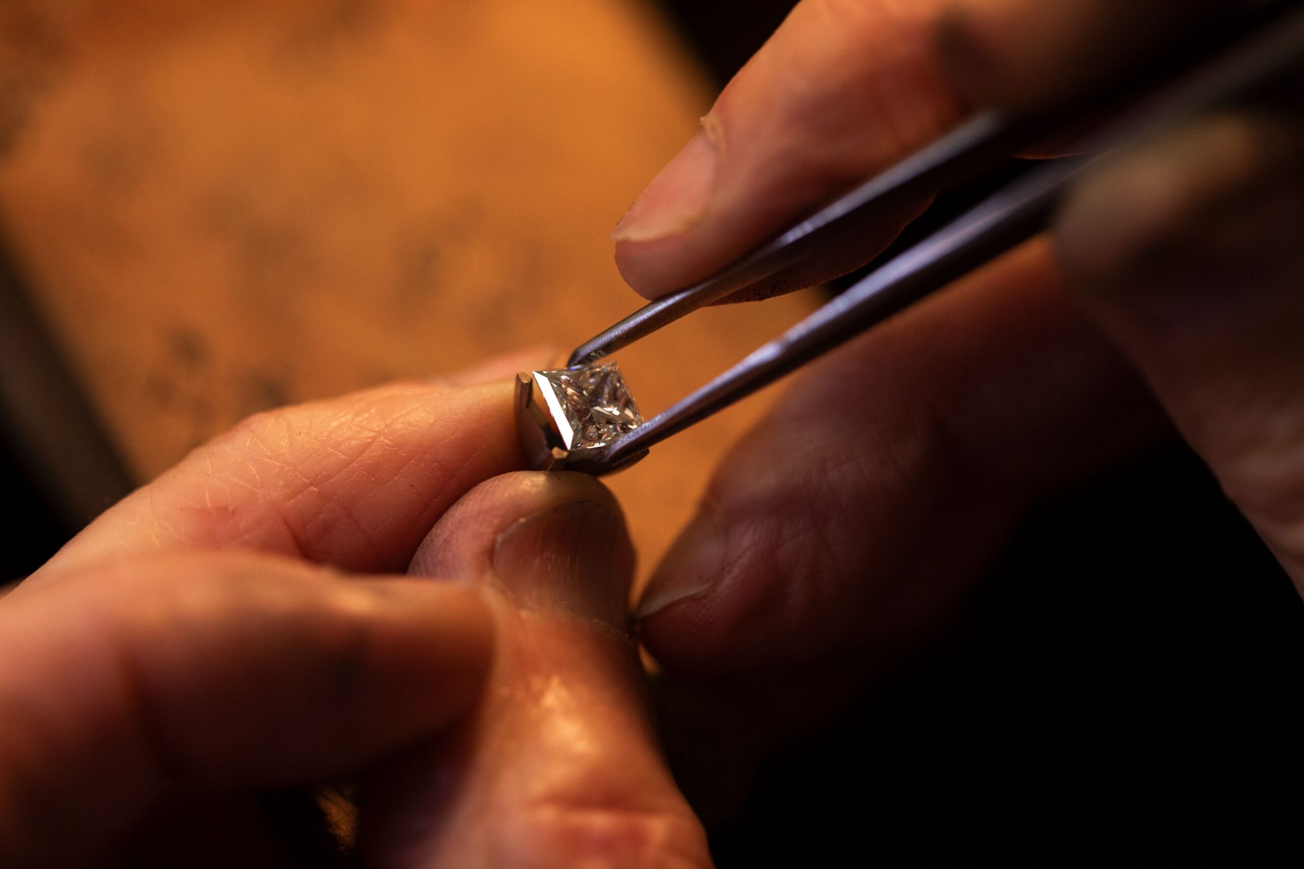 The cutting, he says, is the thing that makes a diamond stand out, sparkle like a prism. The multi-faceted round brilliant cut displays the most light and is still the most popular, but other cuts like emerald and cushion are also much admired.