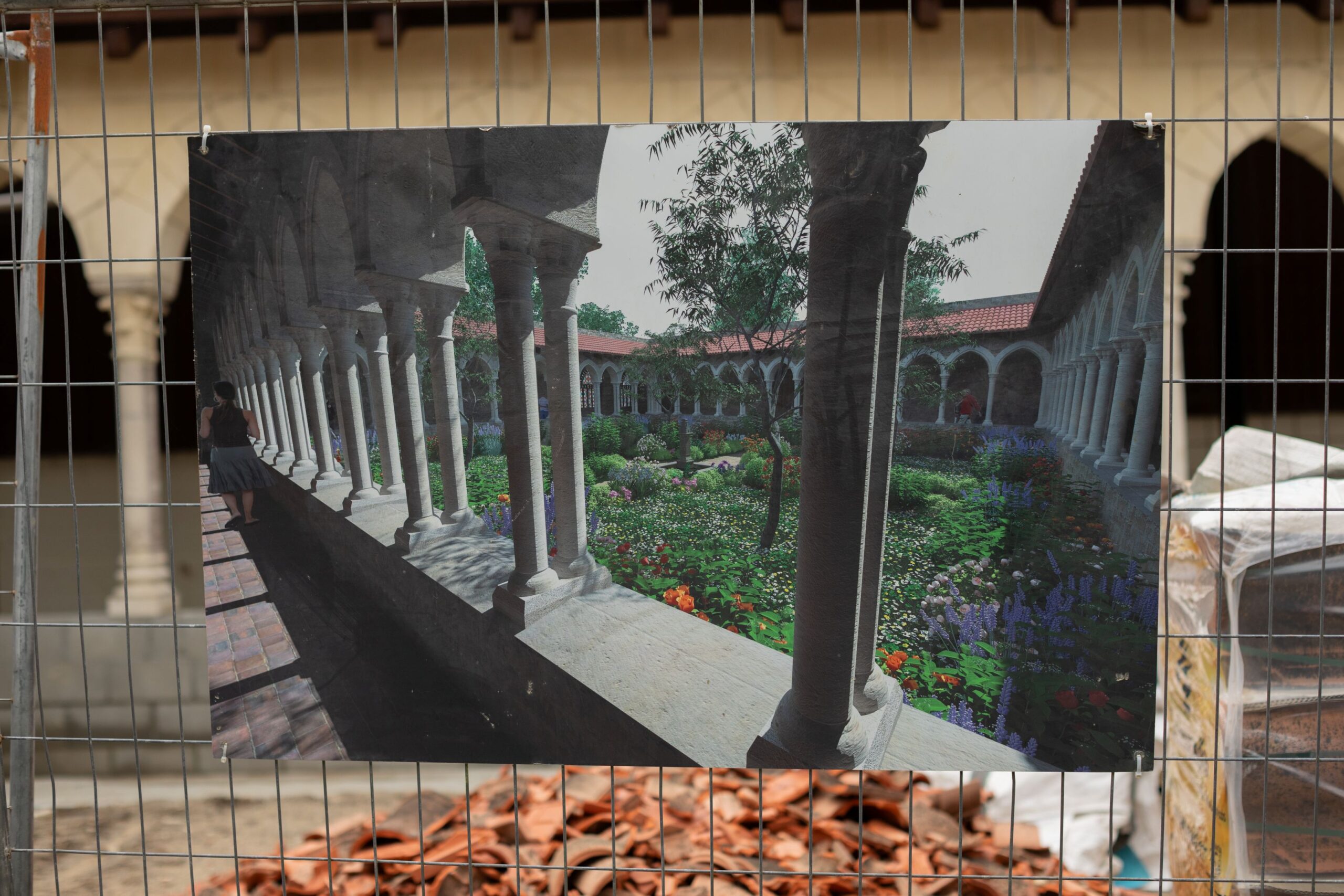 As we near the Medieval Garden, Glenn Morris and the team from Tuscany Statues are working on the six tonne bell tower that will be hoisted on top of the garden’s structure. The Medieval Gardens are a testament to their craftsmanship, as the apothecary garden, the main focus of the Medieval Garden, is surrounded by a covered archway with small double columns, decorated with beautiful motifs.