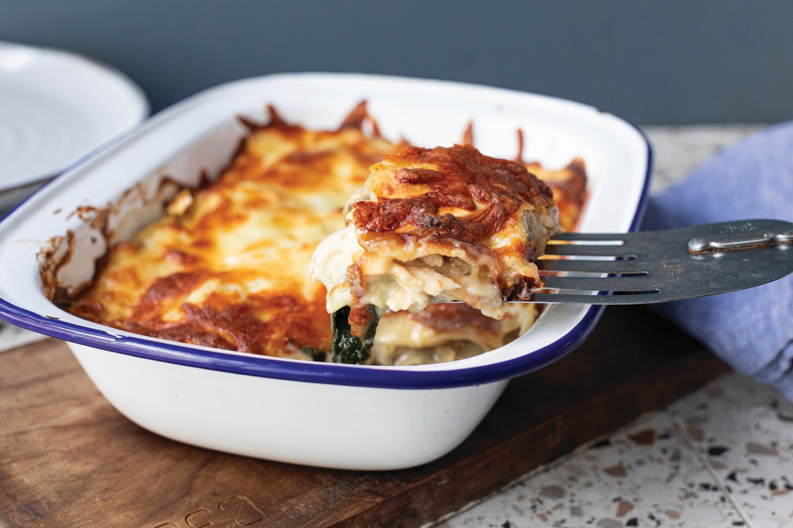 This dish is so delicious, I have often found myself cooking ricotta stuffed chicken just so we can have this lasagne. It freezes well and, trust me, you will thank me on a busy midweek night when you have one of these in the freezer you can whip out!