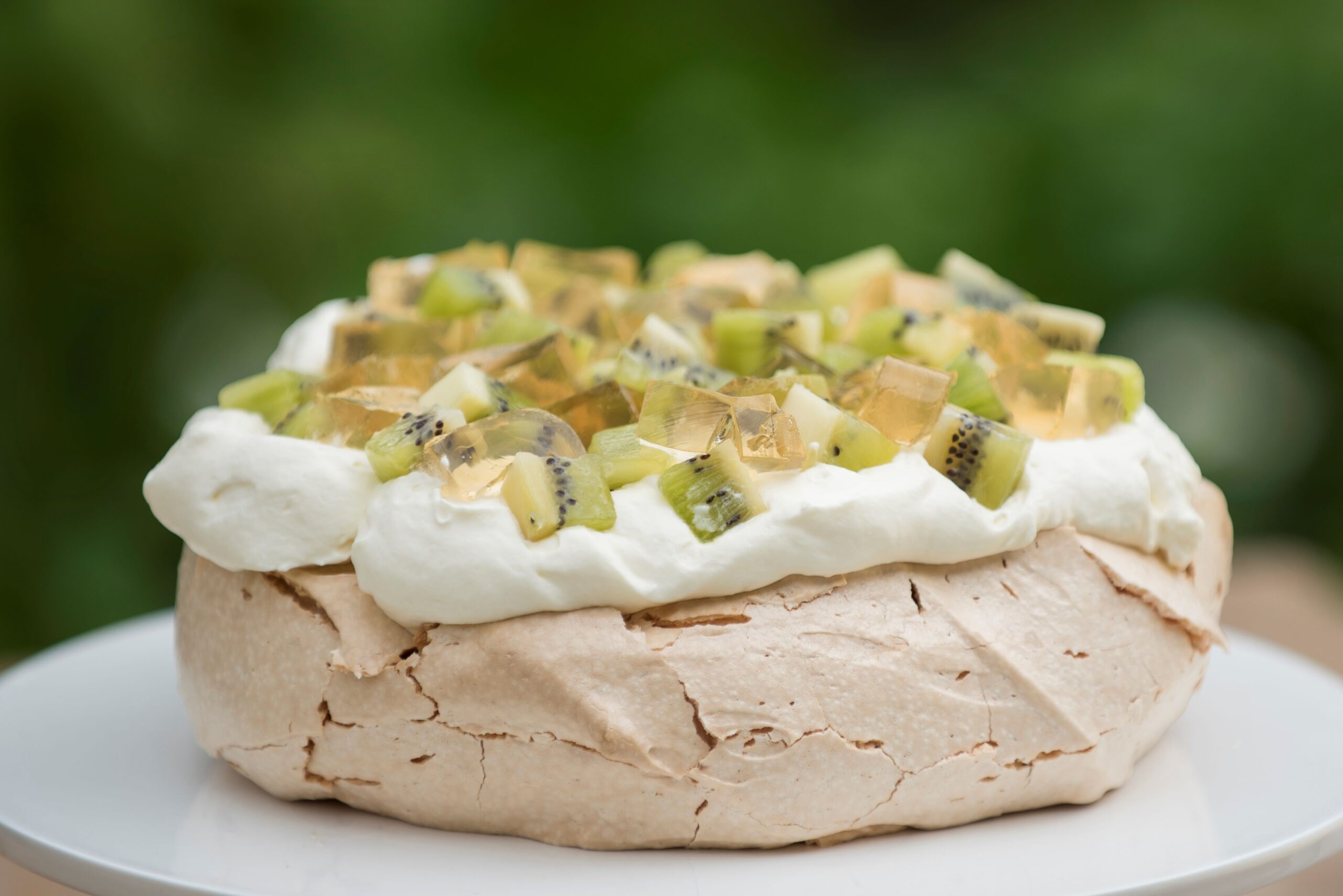 In this take on the pav, I pay homage to Shirley’s creations, but instead of jelly crystals I have turned the world famous in New Zealand, L&P, into jelly and paired it with fresh kiwifruit, and of course lashings of cream!