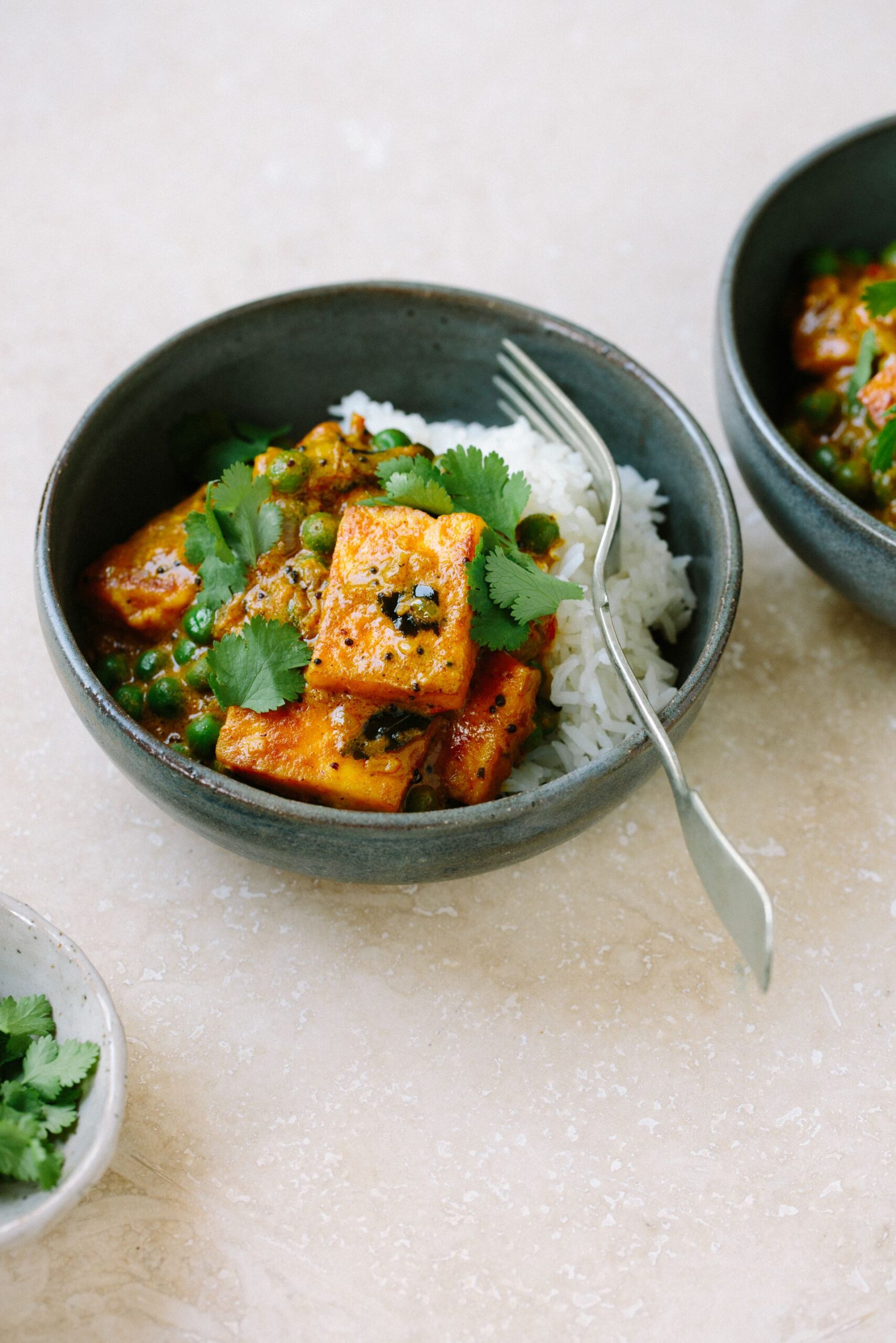 This simple curry comes together in the time it takes to cook rice. While the ingredients list looks long, it is mostly just spices. You can find fresh curry leaves at selected supermarkets and fruit and vege stores. They freeze well and can be used straight from frozen, meaning you’ll always have them on hand. For a vegan alternative, use firm tofu in place of the paneer and use coconut or olive oil to cook. Try to find a coconut milk that only contains coconut and water, to avoid unnecessary additives (Chantal Organics do a nice one).