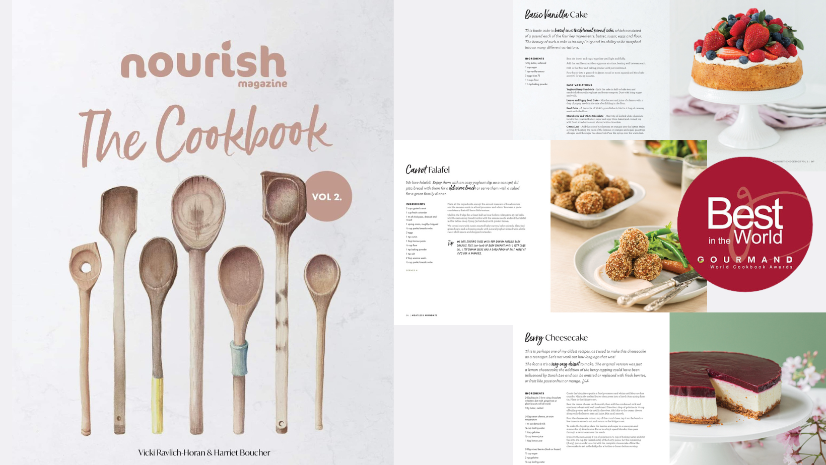 Named top 4 in the world for easy recipes and 2nd in the world for our gorgeous cover at the Gourmand awards the Nourish Cookbook, vol 2 is the one cookbook you not only need but will cook from. Trust us this will be the filthiest cookbook you own, which is why you just might need 2 or 3– one on the shelf and one in the kitchen with splatters and pages stuck together and one give as a great gift.