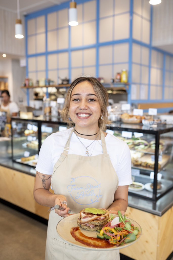 Colleen’s strong catering and hospitality experience and Michael’s solid business background make then a successful partnership with complementary skills. When Bayfair was being upgraded, the centre owners, AMP, approached the couple to run a cafe in this space. Delays due to COVID saw Farm Street Larder open a little later than planned, in August, 2020, and they have been busy ever since. A few of their Bach staff followed them to Farm Street, some clocking up an amazing five years with the same employer in an industry known for being fickle.