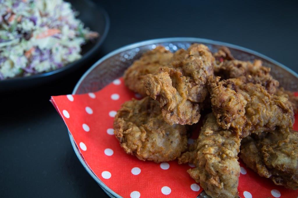 The trick to making succulent moist chicken is to brine it first, and after much research and many trials, I discovered brining the chicken in buttermilk, the ingredient often used to make the coating, created the best results.
