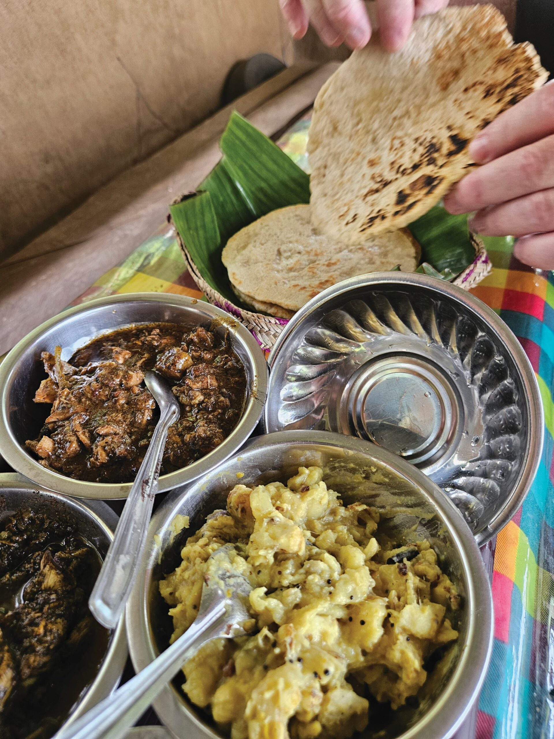 Curds and Treacle – As we drove south from Yala, the streets were lined with stalls selling mee kiri, or buffalo curd. Sold in their unique terracotta dishes, the curd, popular at breakfast time, is served with a sweet treacle (kithul peni) which is made from the sap of the kithul palm and is delicious!
