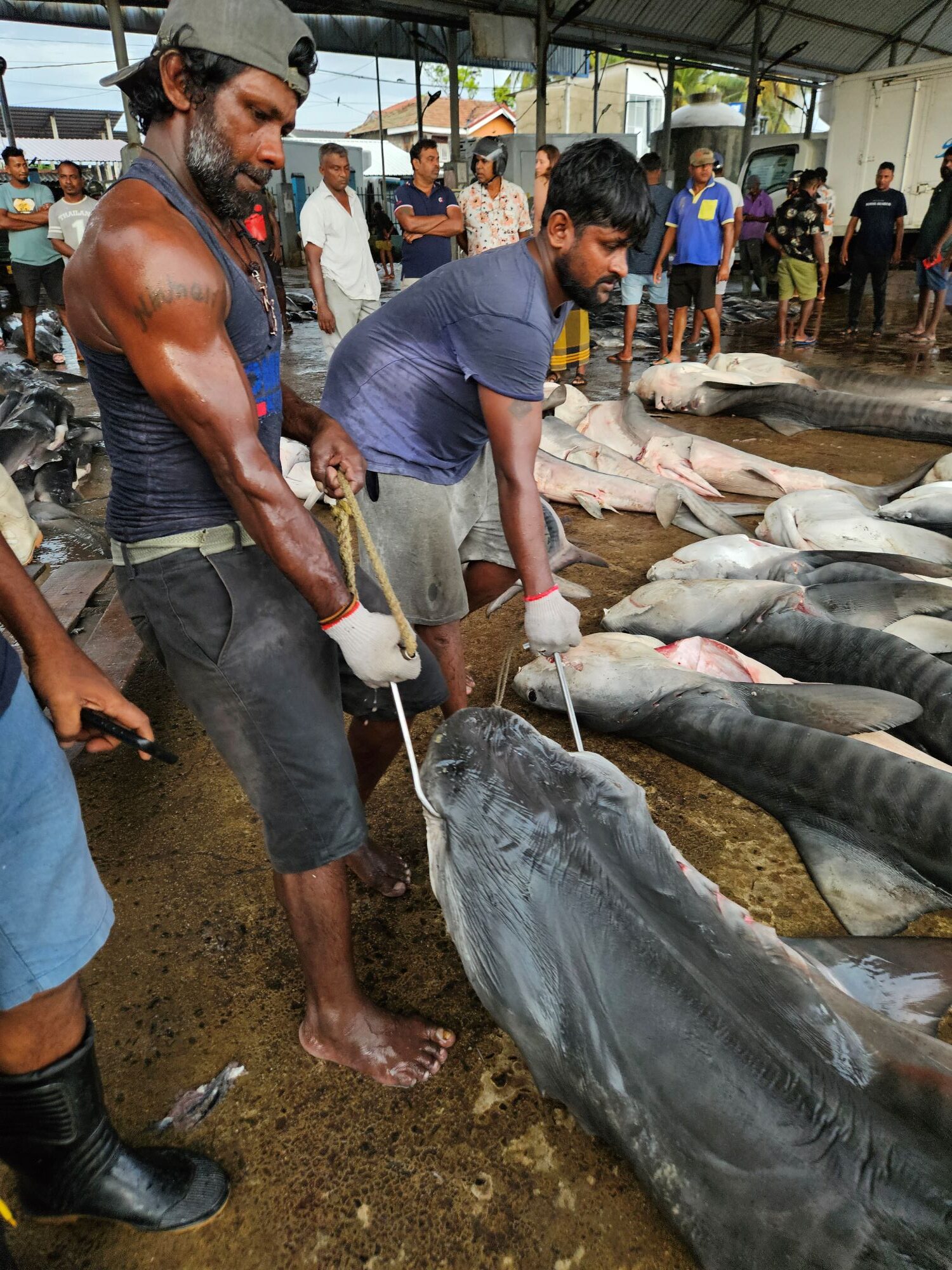 Their catch, and a good proportion of the fish eaten by this seafood-mad nation, ends up at the Negombo wholesale fish market. We rose early to see the action and were rewarded with just that. We stood next to the boats as men winched huge sharks, one after the other, onto the dock to be auctioned. We strolled between the vendors, our jandals wet with rain, sea water, fish blood and more, seeing sea creatures of every size and shape be brought in and sold. There are prawns not much bigger than whitebait, crabs as big as your head, stingray, tuna … the list goes on.