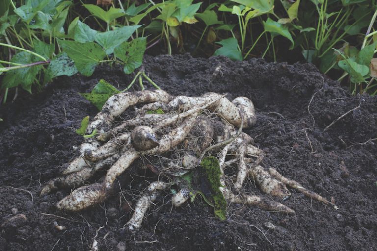 There are seven historic varieties of kūmara in the garden, some of which have been DNA traced backed to the original waka bringing the first Polynesians to these islands, such as the parsnip-white taputini.